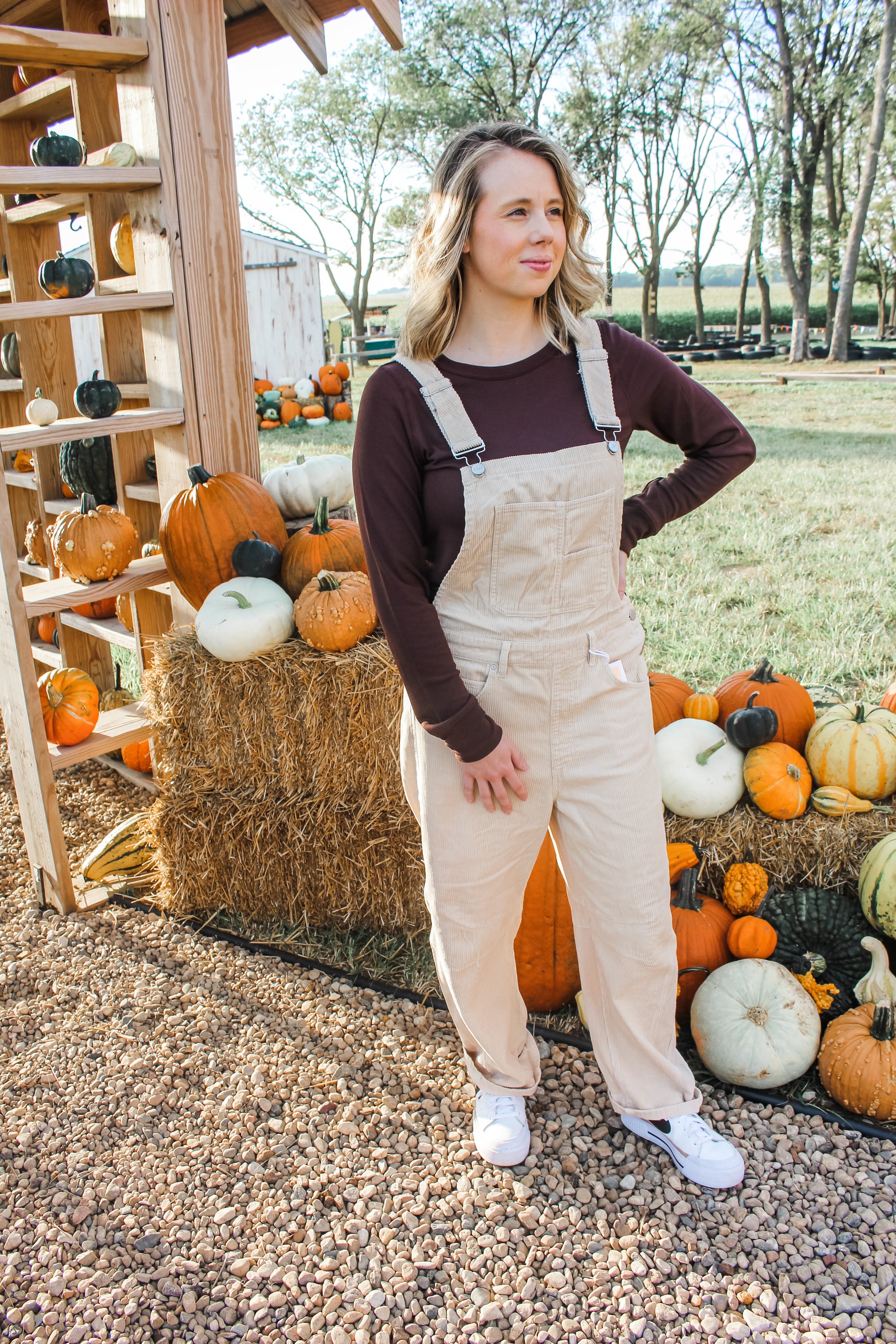 These corduroy overalls could not be cuter! The color, the fit, just trust us you will love them. Models are both 5'9" and pictured wearing their true size medium.