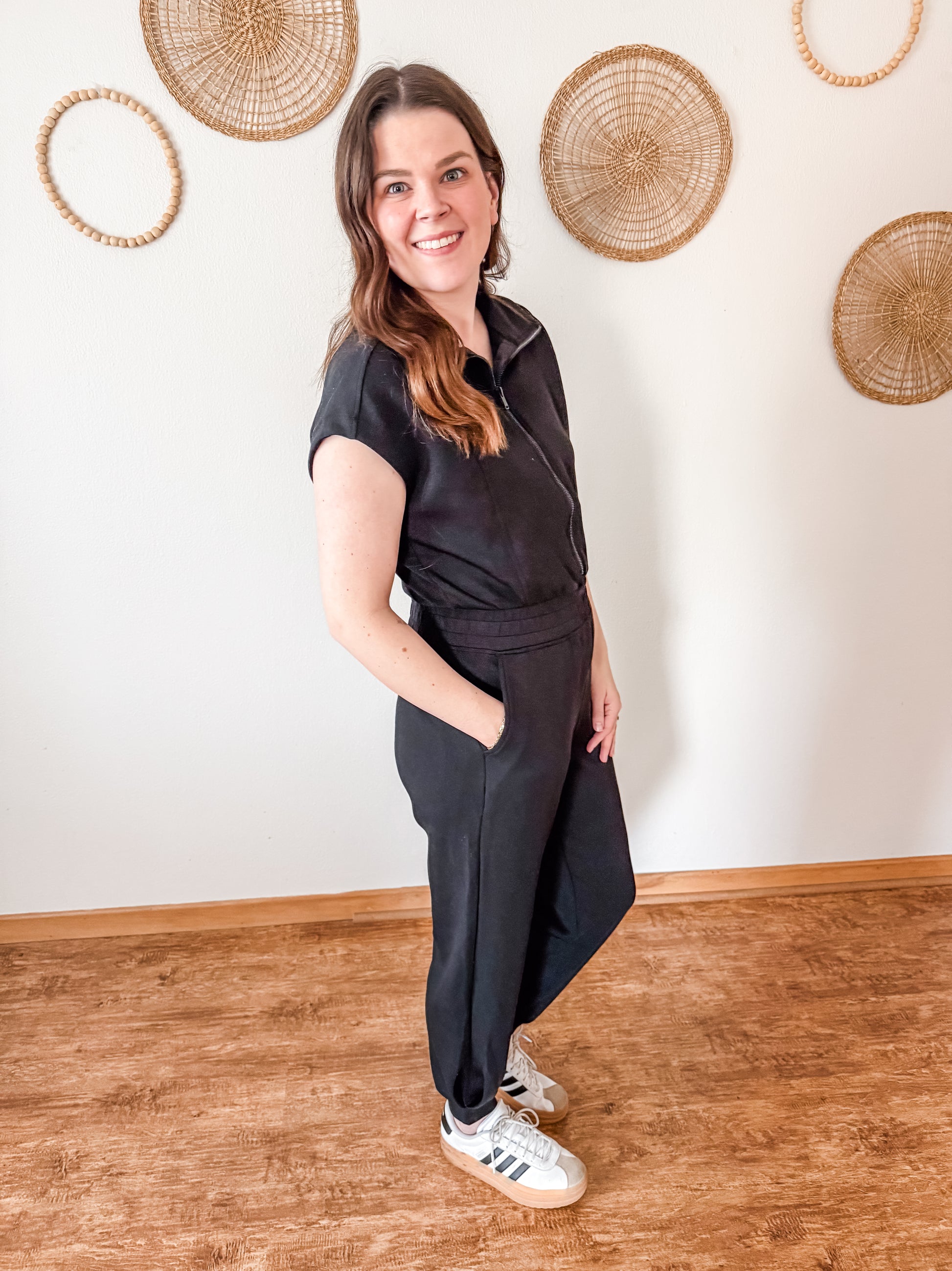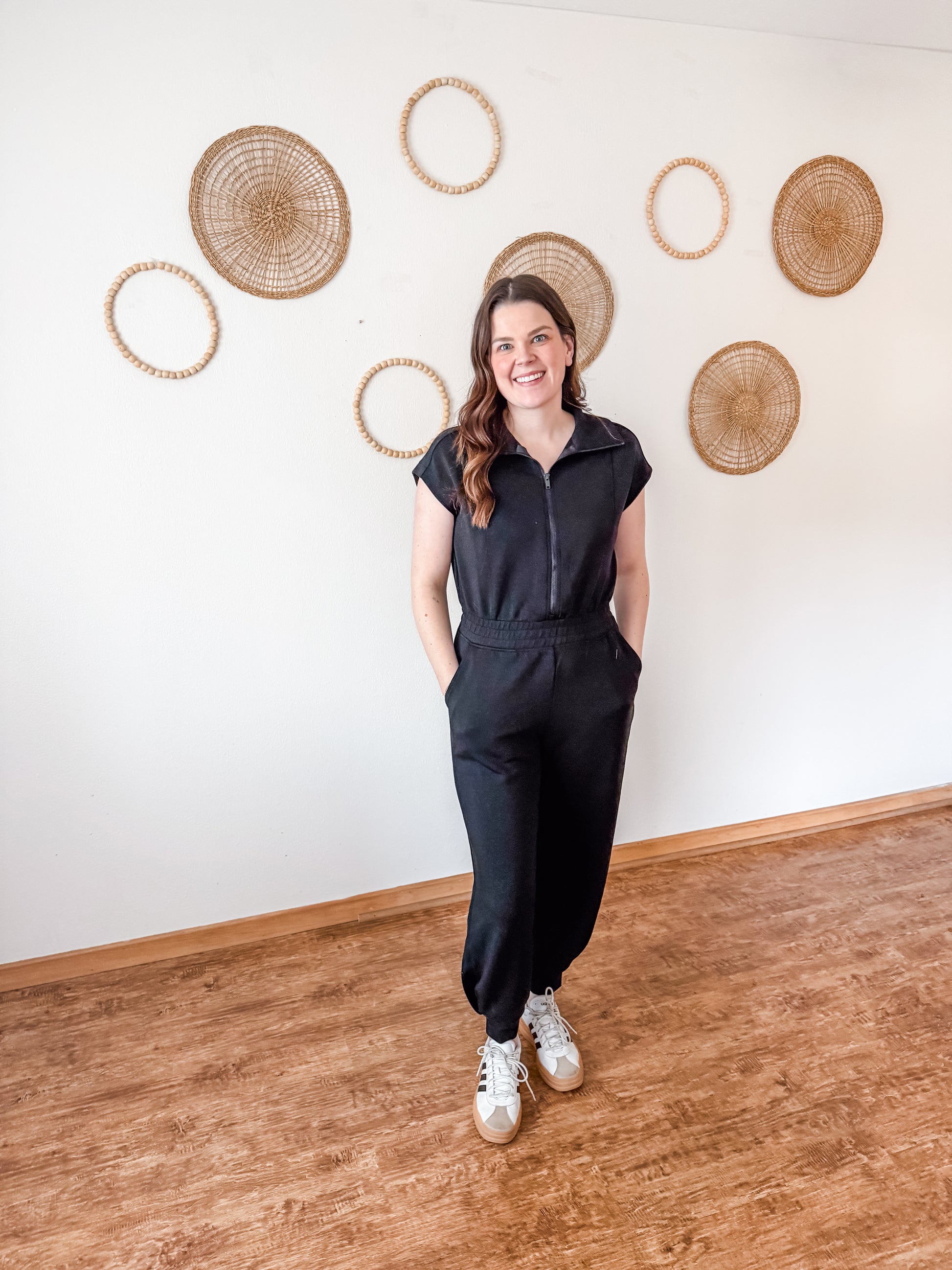 We love the versatility of this jumpsuit! Business casual or a lounging - it works for both! The comfort & cuteness is unmatched. Featuring a zip front chest, cinched waist, collared neckline, side pockets, and cinched ankles. Model is 5'9" and pictured wearing her true size medium.