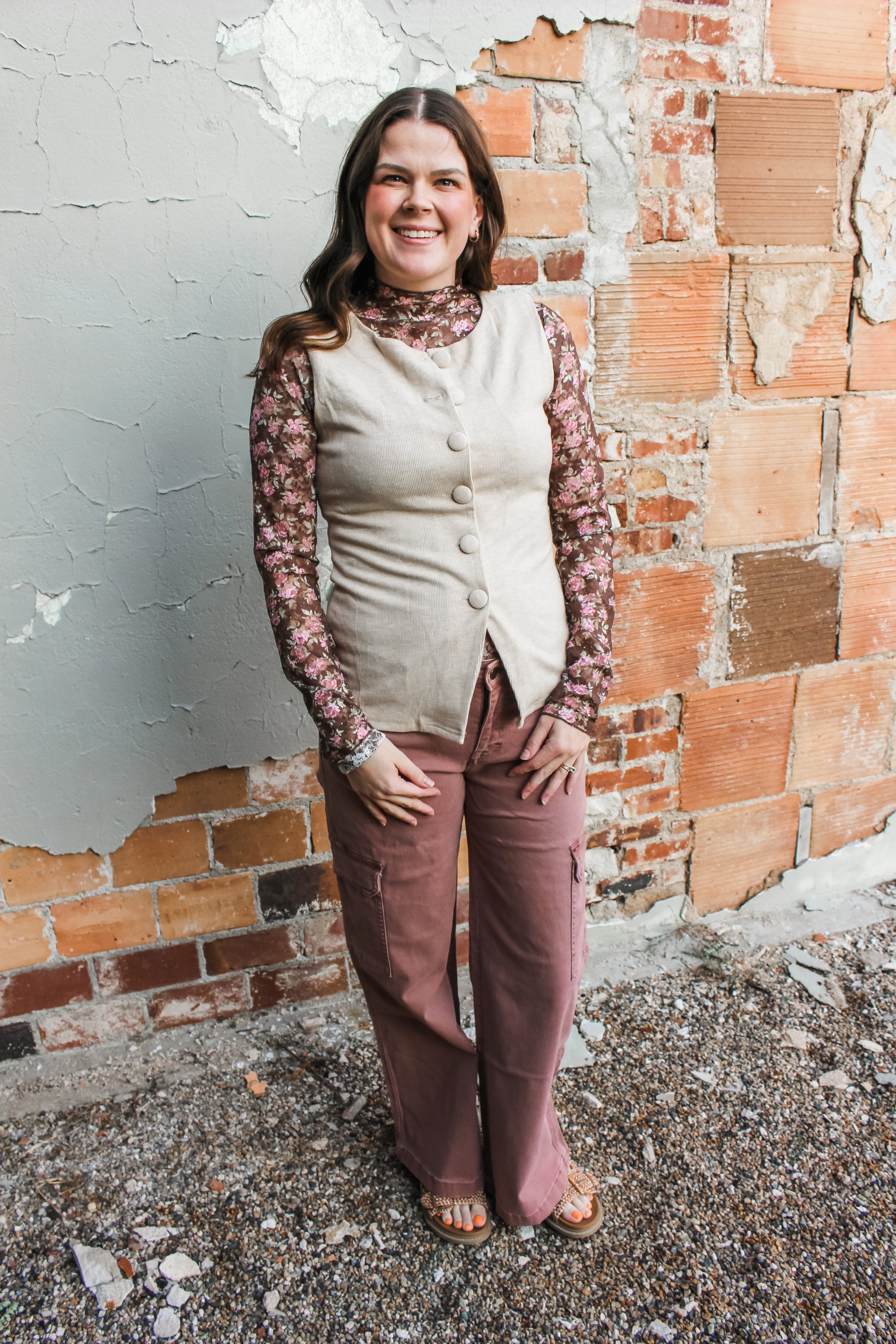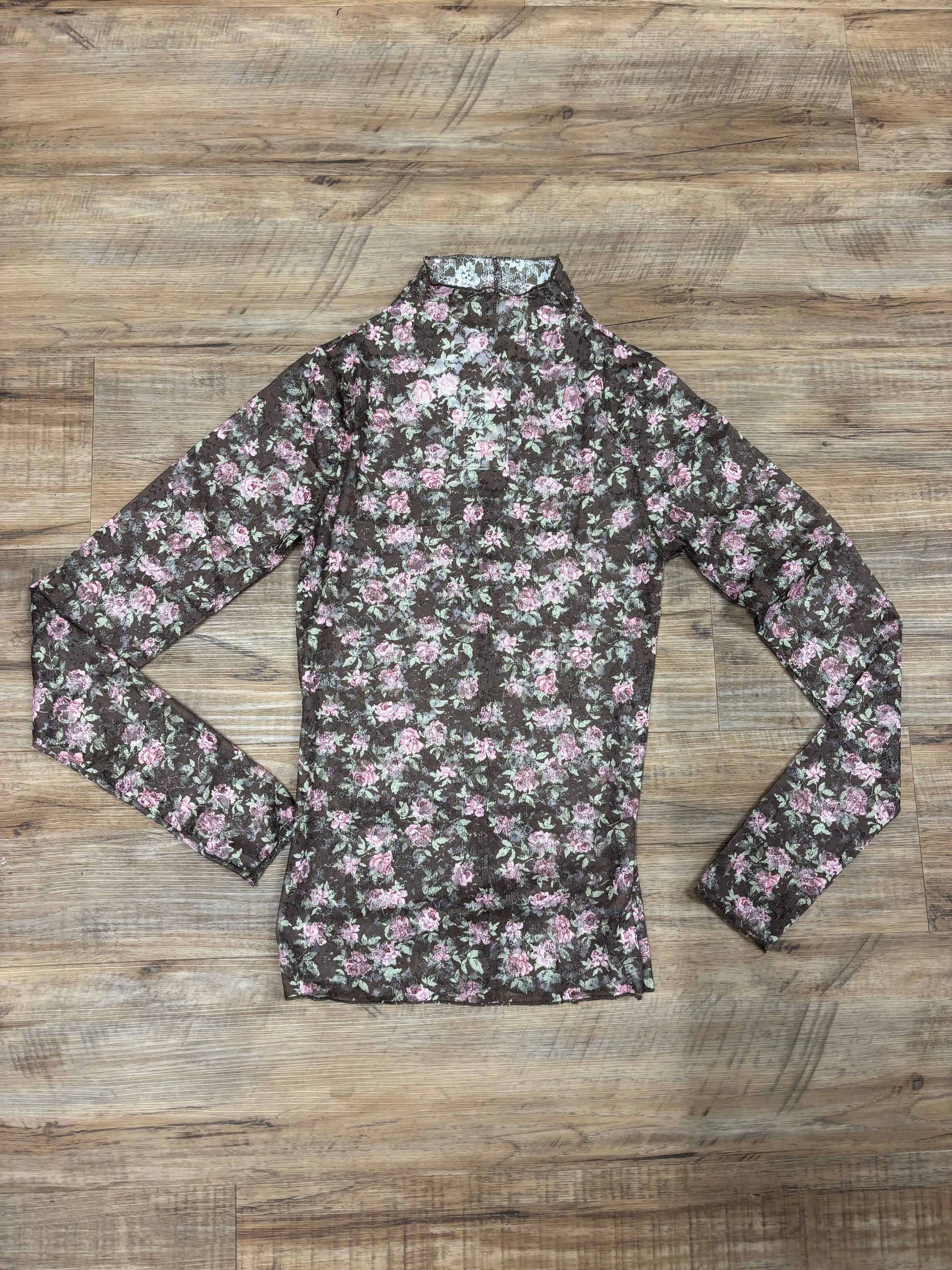 This floral mesh top is so trendy & can be styled so many different ways! We love the colors in it for fall. Model is pictured wearing her true size, if between sizes we recommend sizing up one.