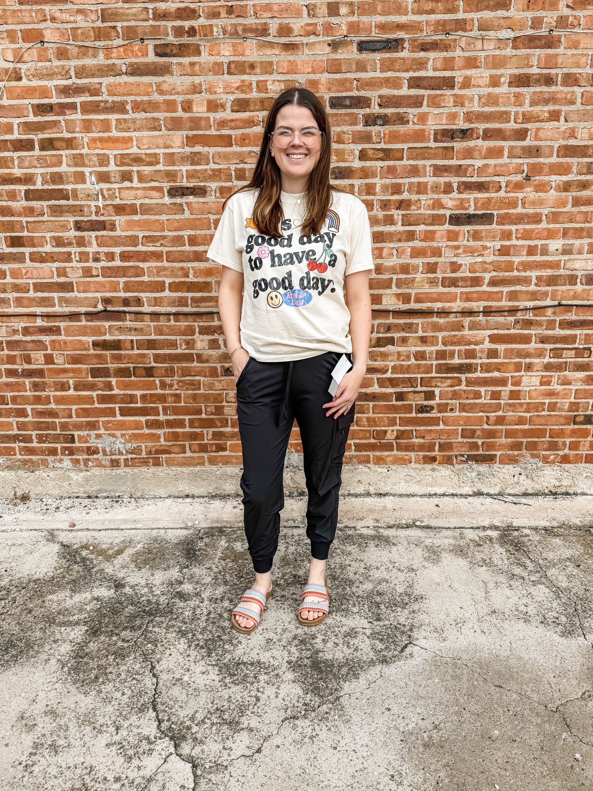 The perfect Mono B joggers for on the go or lounging! Featuring an elastic waistband with functional drawstring, pockets, and cuffed at the ankles. So cute & comfy! Fits true to size.