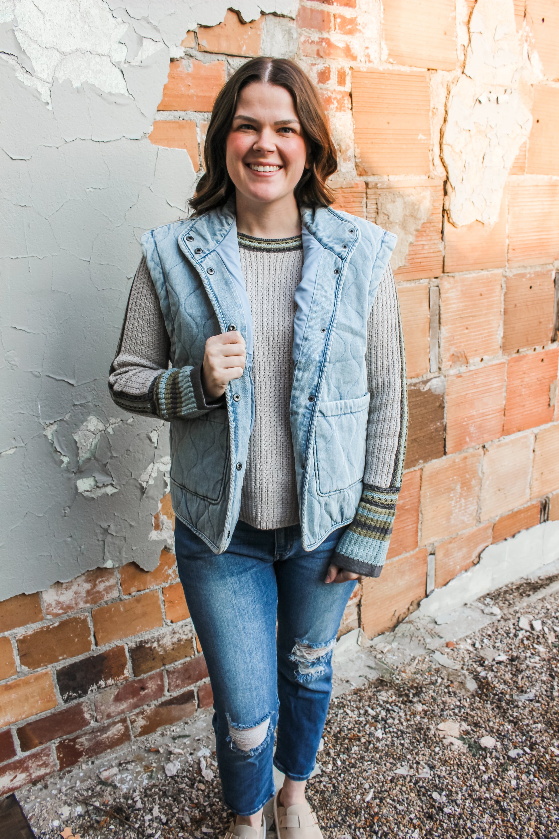 The must have vest of the season! Featuring button down front, pockets on the front, and the cutest quilted design on the material. Fits true to size.