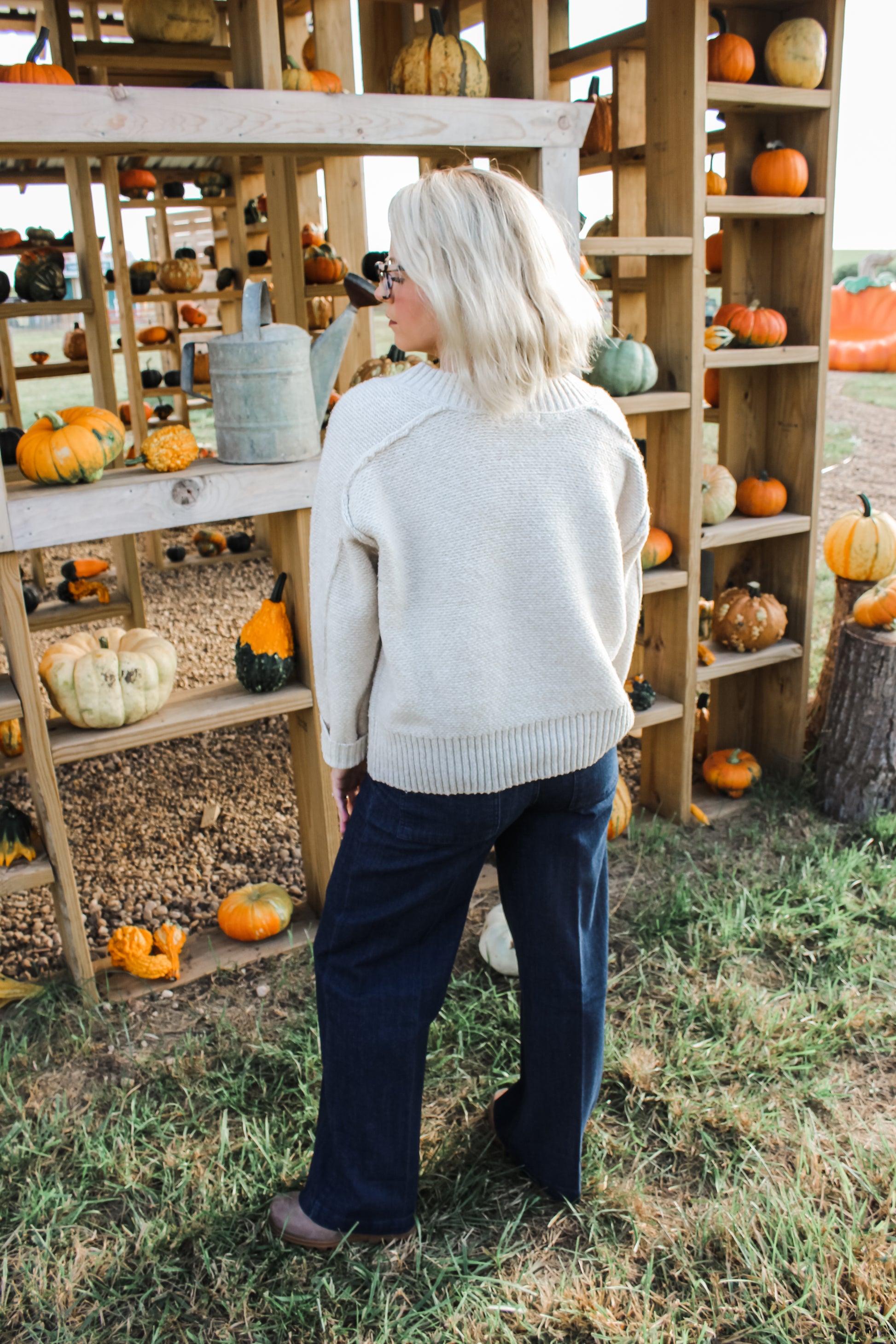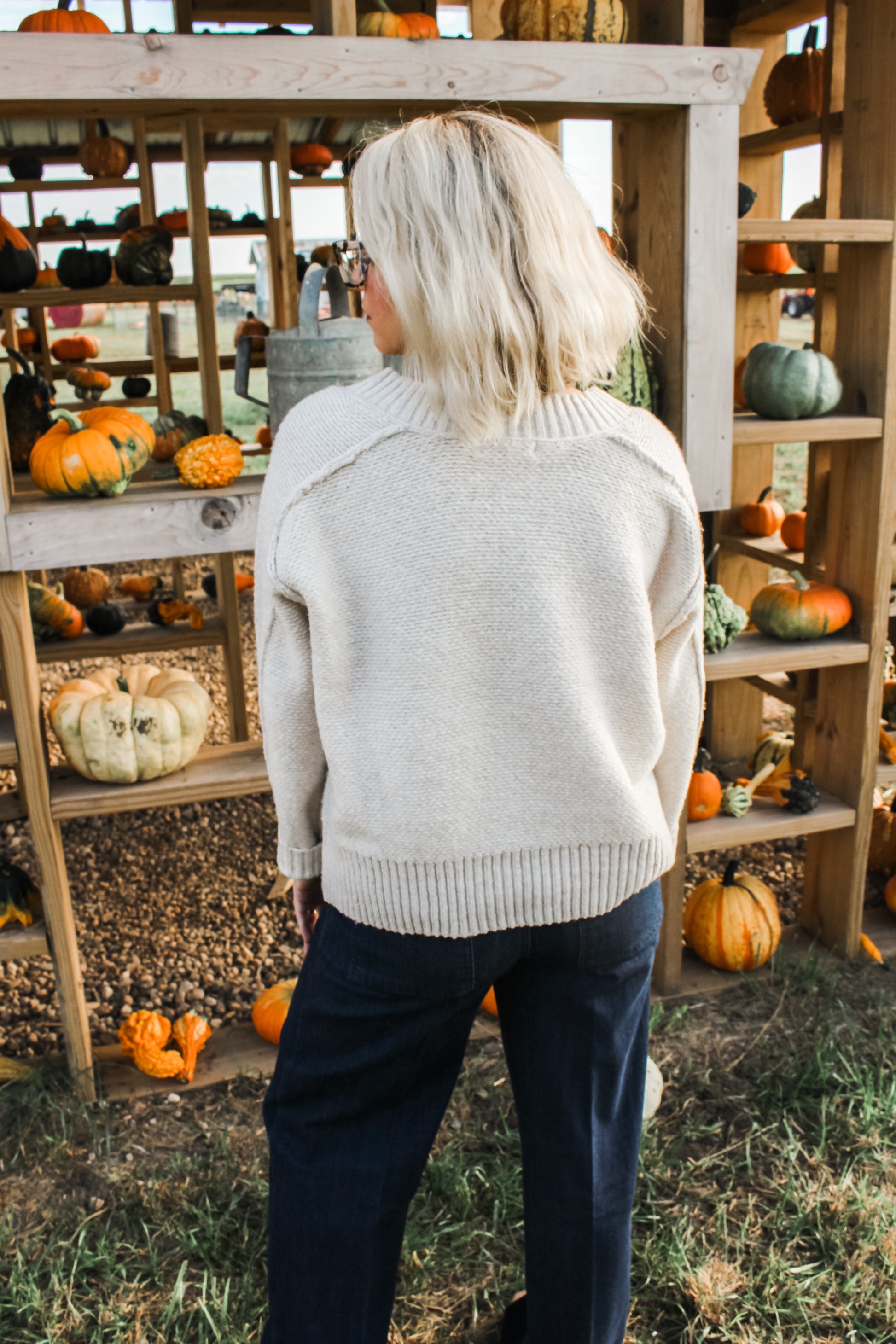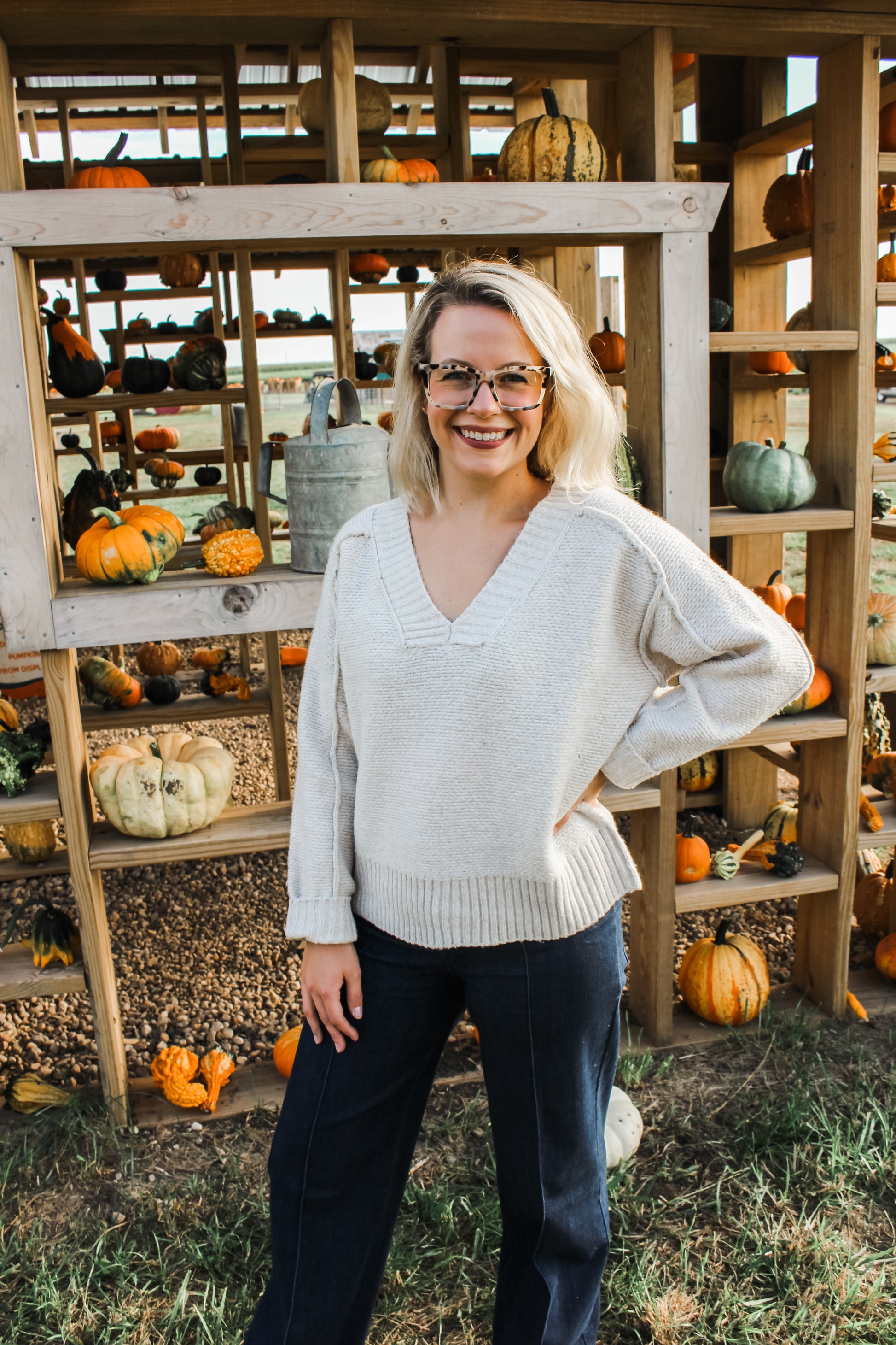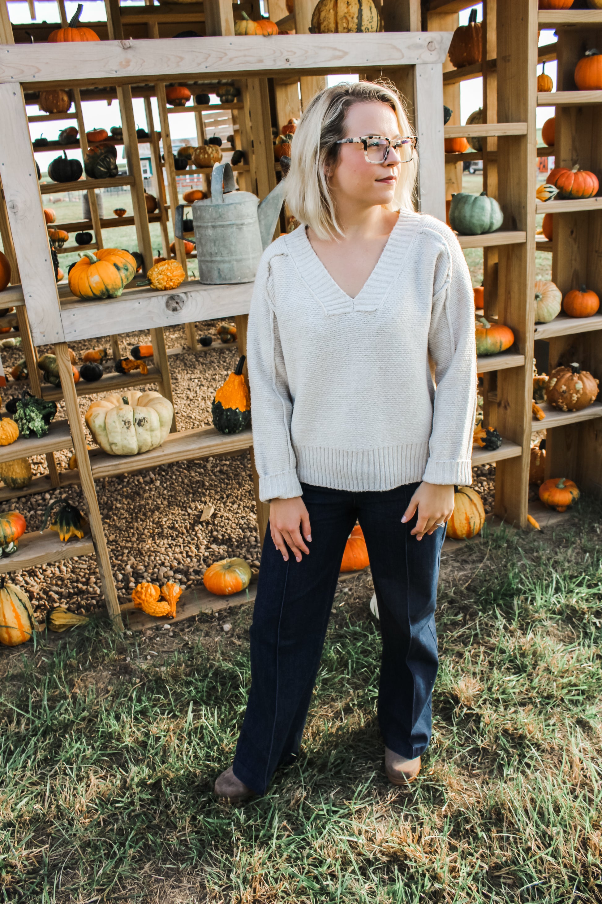 A cozy sweater to dress up or down - either way you will be cute & comfortable! Featuring a chunky knit material, v-neck, and slightly oversized fit. Fits true to size.