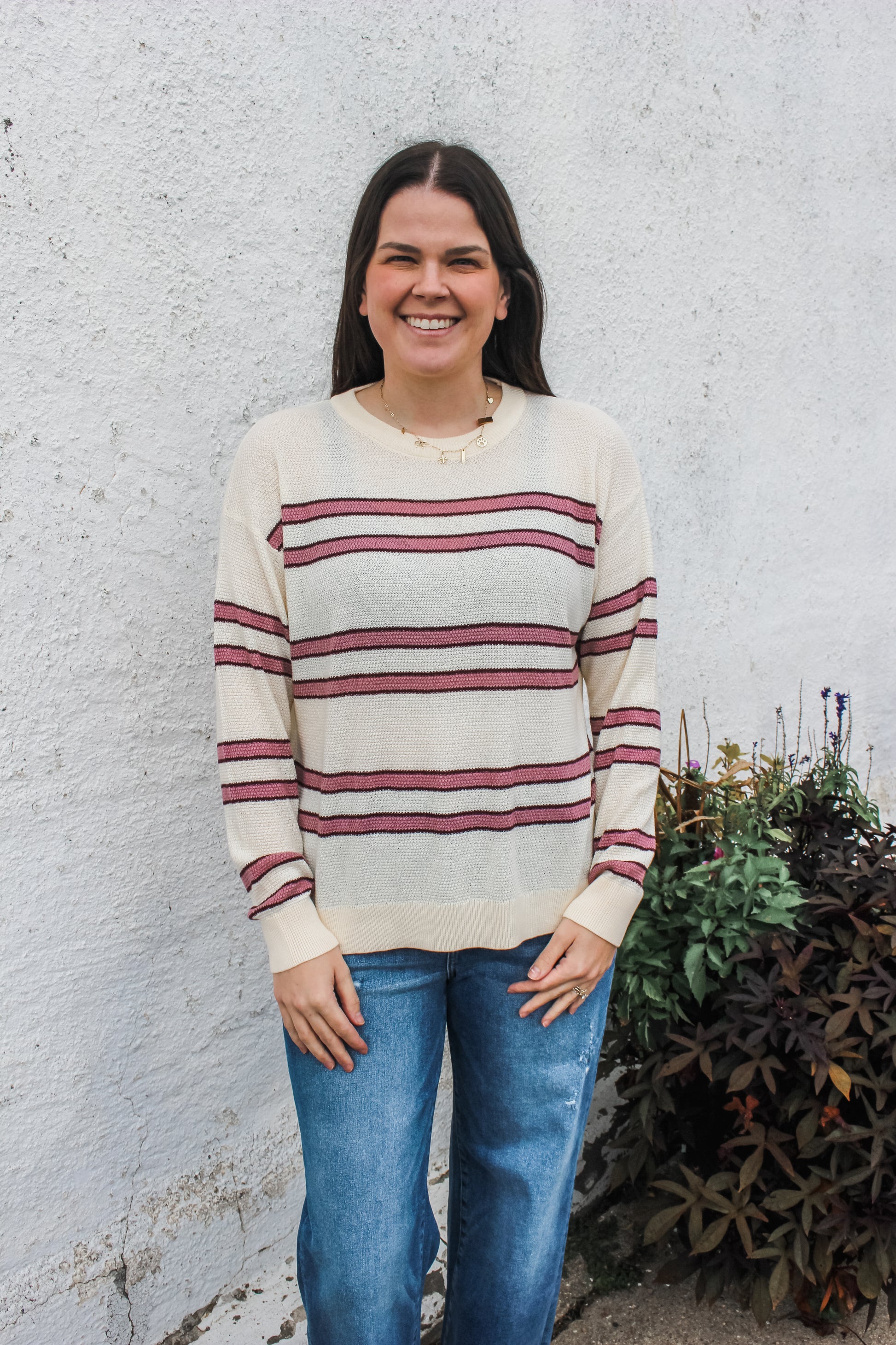 A light weight knit sweater top you will wear over & over again! Comfy, cute, & easy to style. Fits true to size.