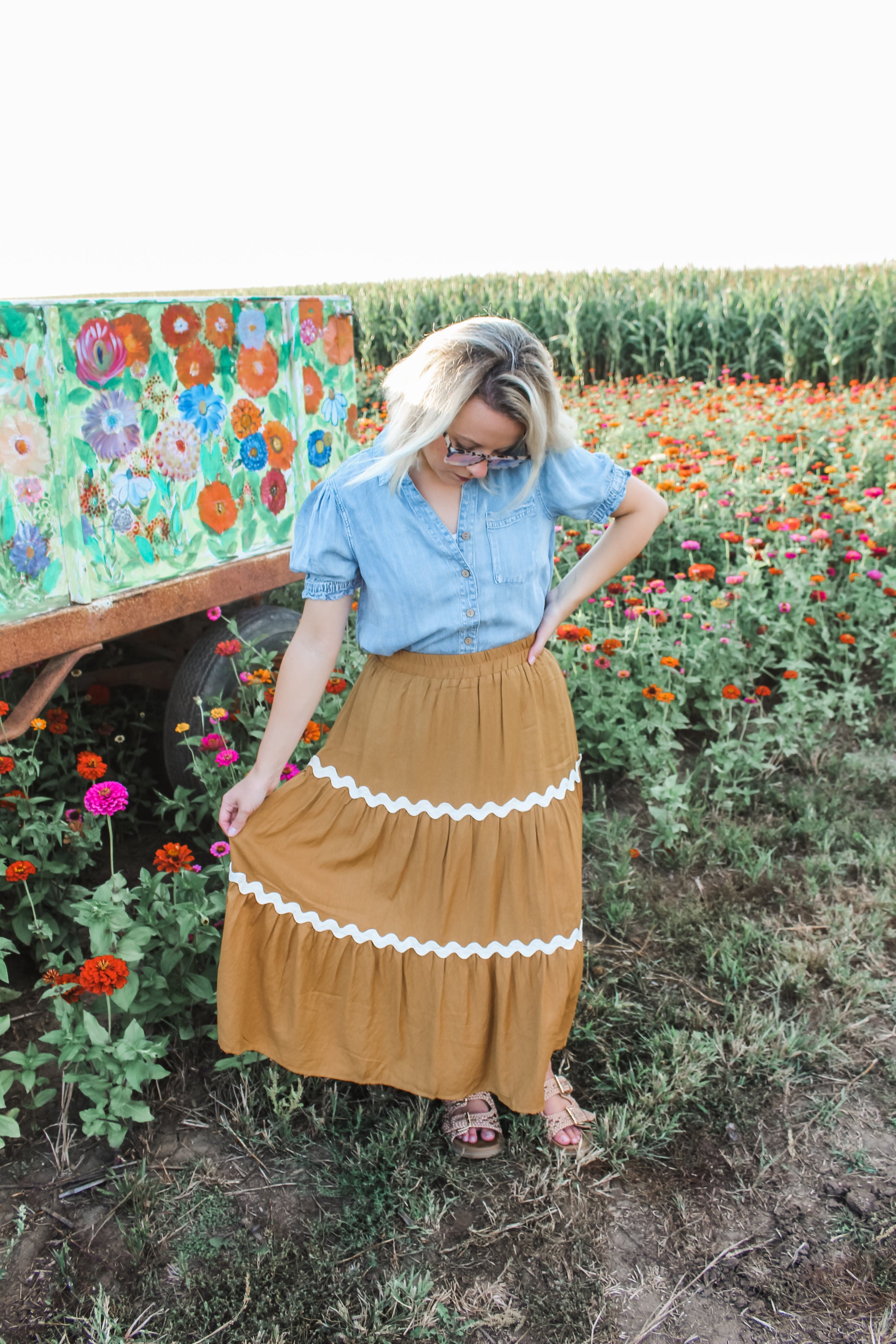 The color of this skirt is perfect for fall! So flattering & so comfortable! We love a simple to style & easy to dress up or down piece of clothing & this skirt is just that. Fits true to size.