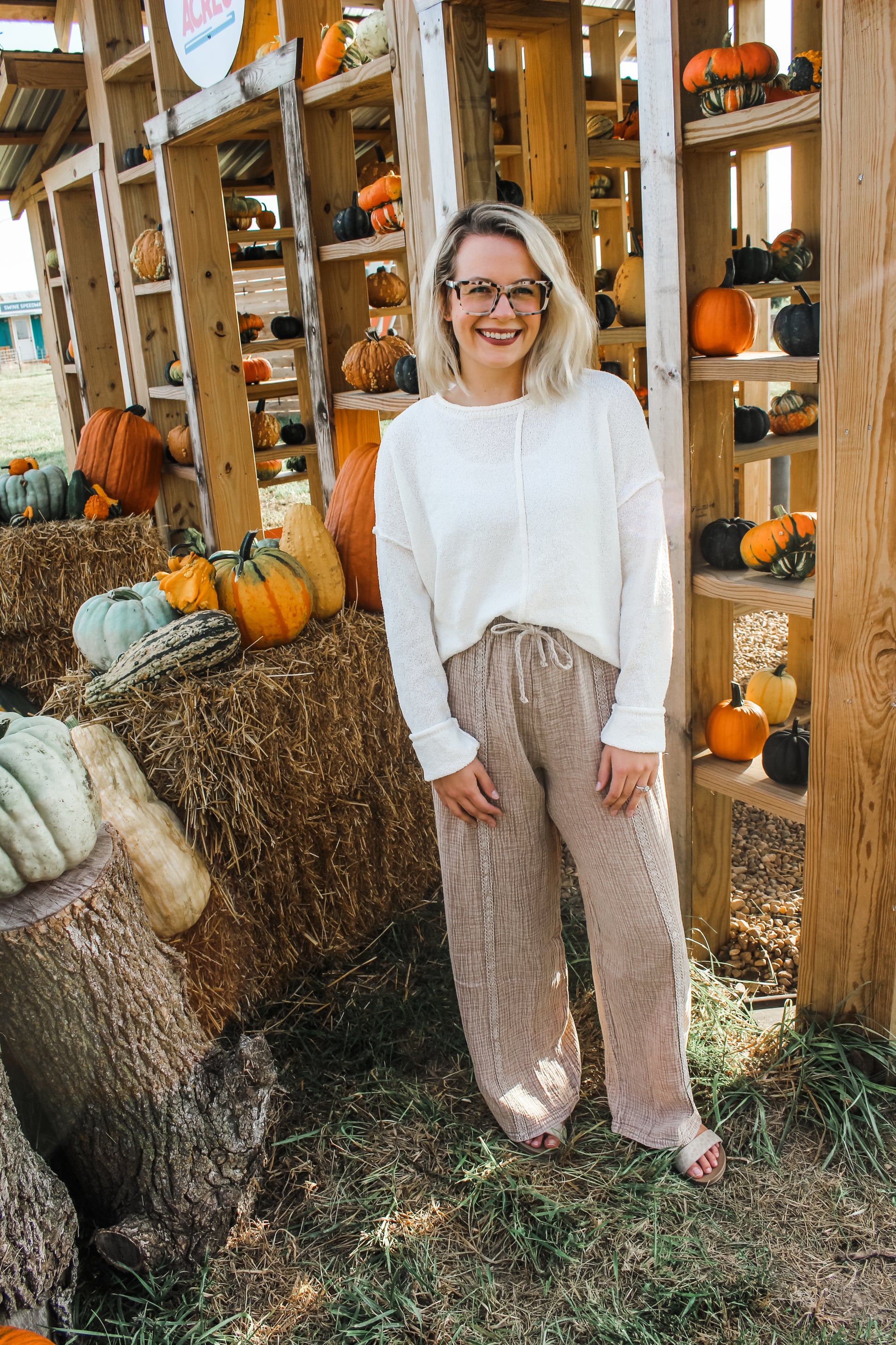 The trendiest pants! These are sure to sell out! Featuring a loose, yet flattering fit, elastic waistband with functional drawstring, and patterned stitching detail down the front. Fits true to size.