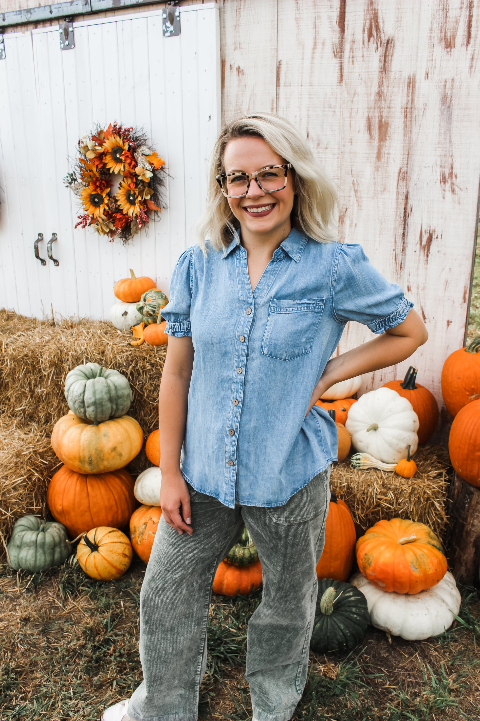 We love a chambray denim top & this one is perfection! Featuring a button front, collared neckline with cinched sleeve detail, and a pocket over the heart. So many ways to style - both dressed up & down! Fits true to size.