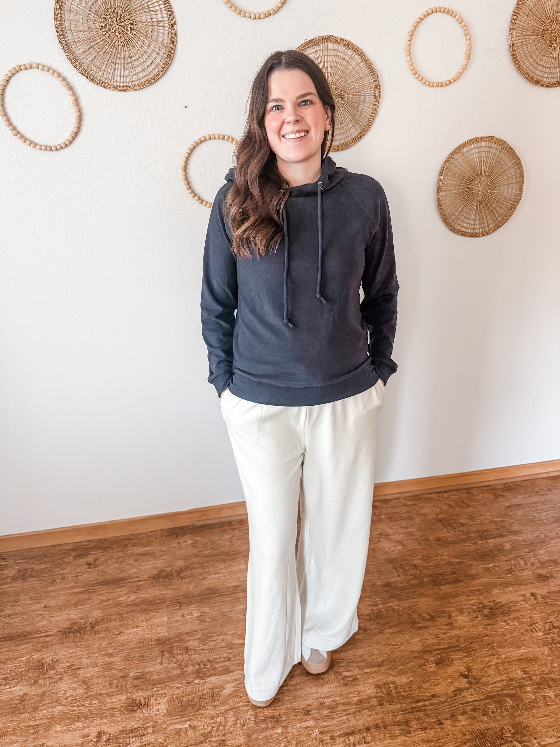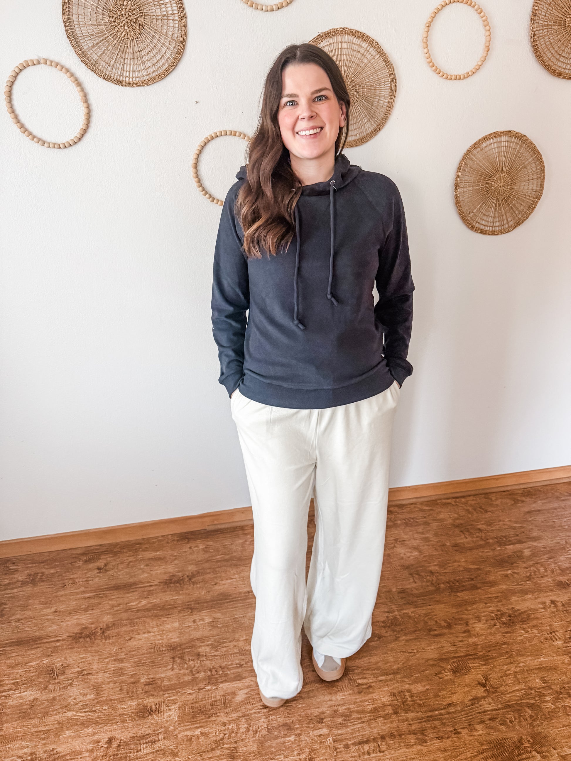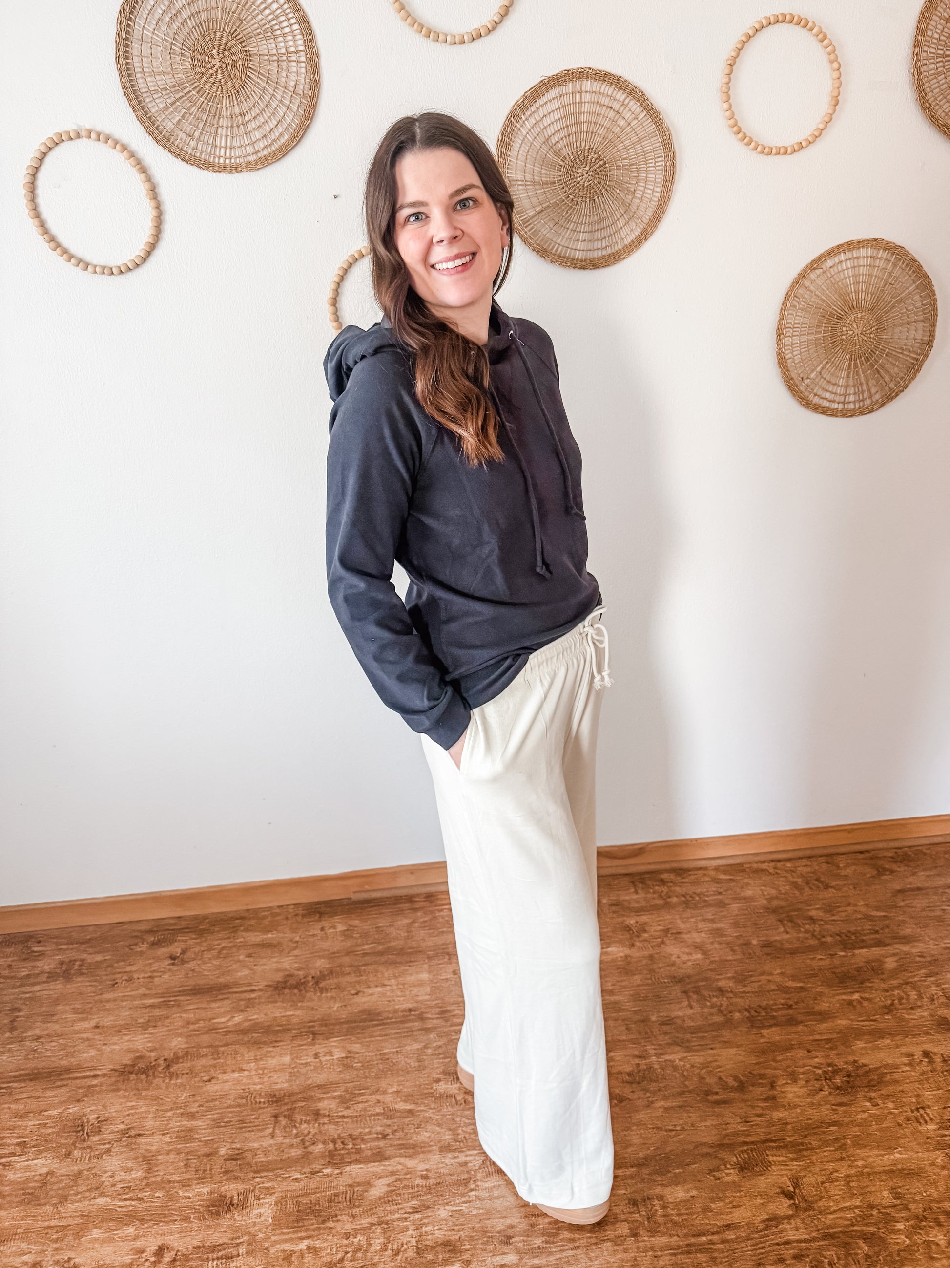 A new level of cozy! The perfect pants to lounge or run errands. So soft, elastic waistband with functional drawstring, side pockets, and wide leg. Fits true to size.