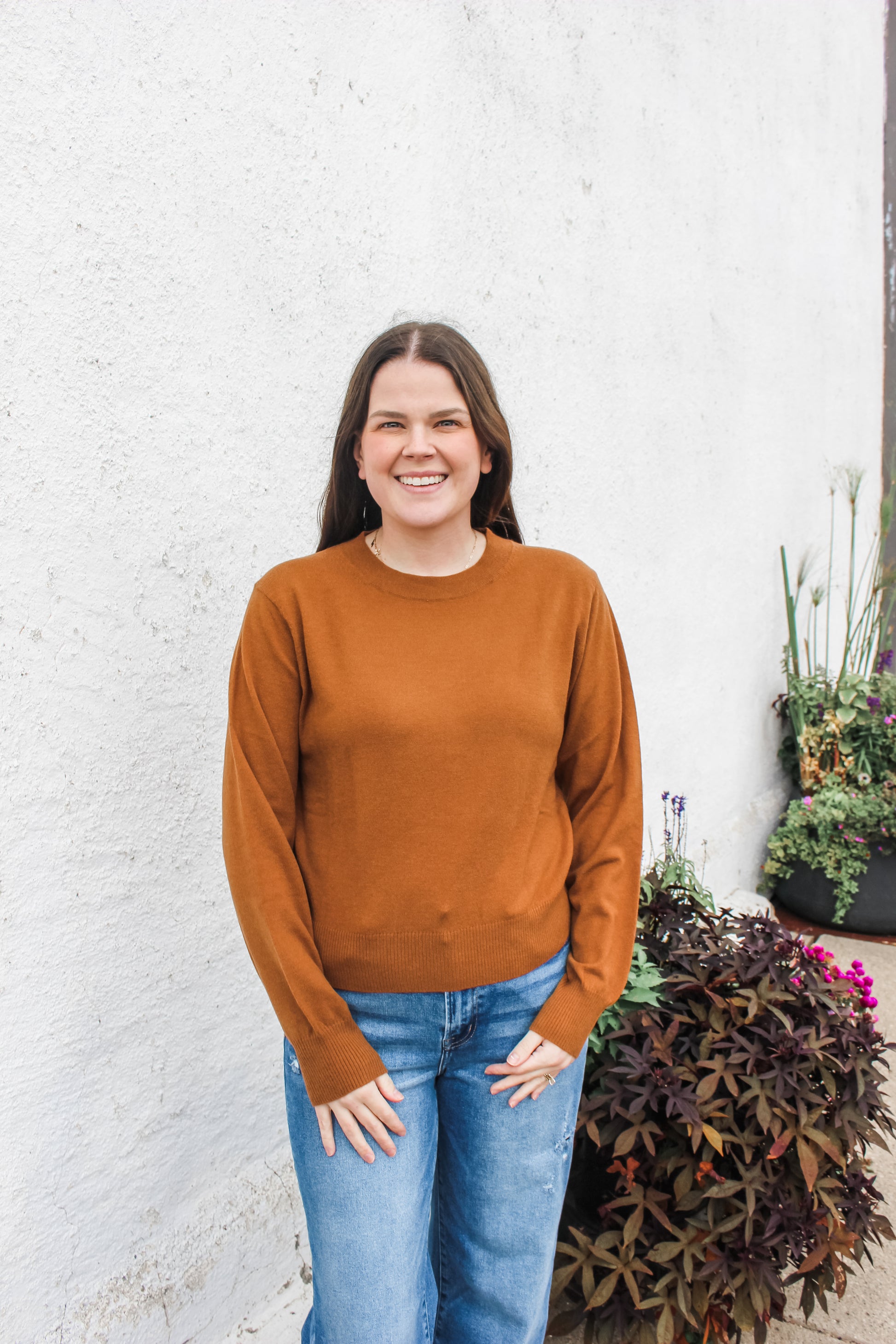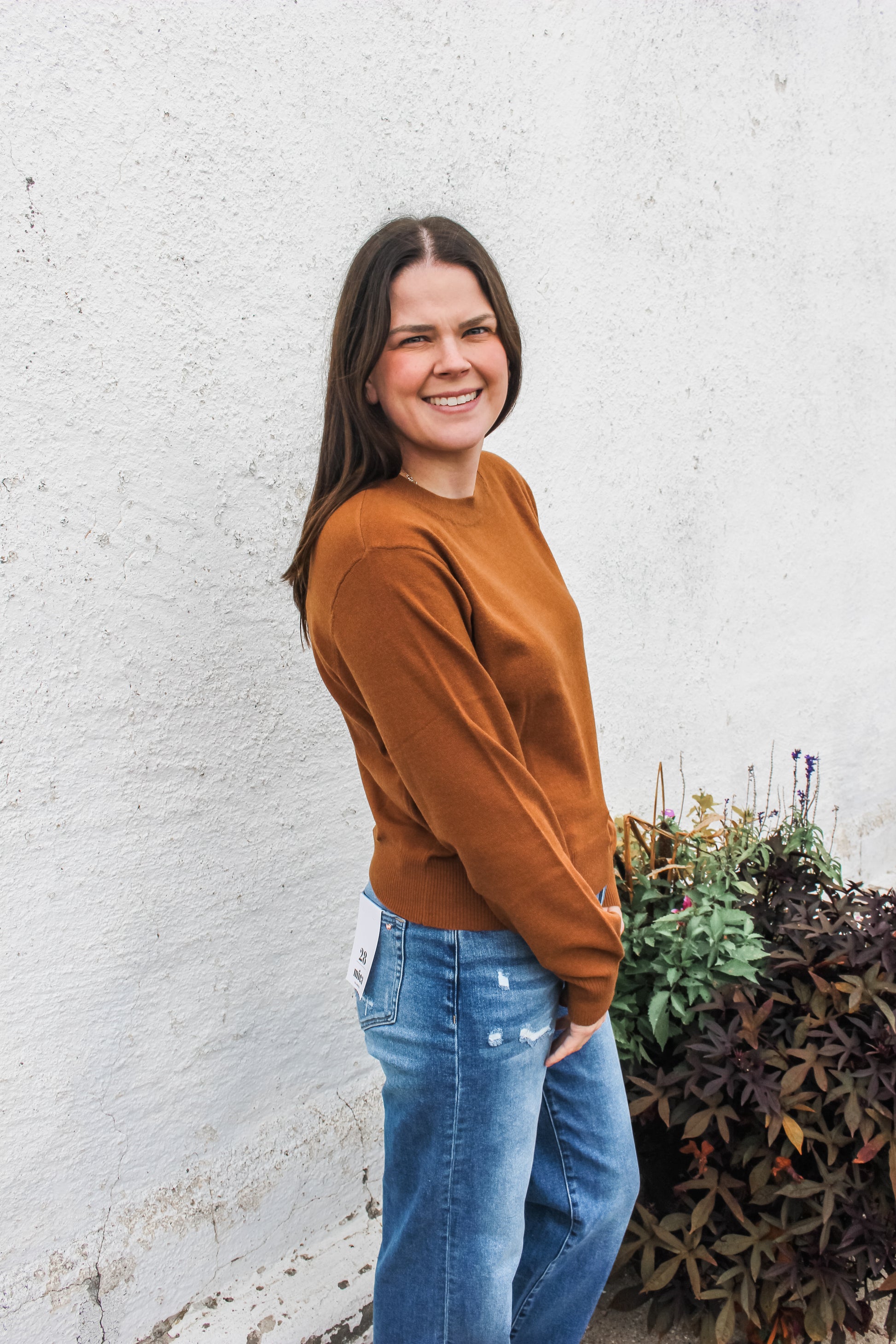 The cutest casual lightweight sweater that can easily be dressed up or down! It is so soft & comfortable & the perfect color for Fall. We love a simple sweater that can be styled multiple ways! Fits true to size.