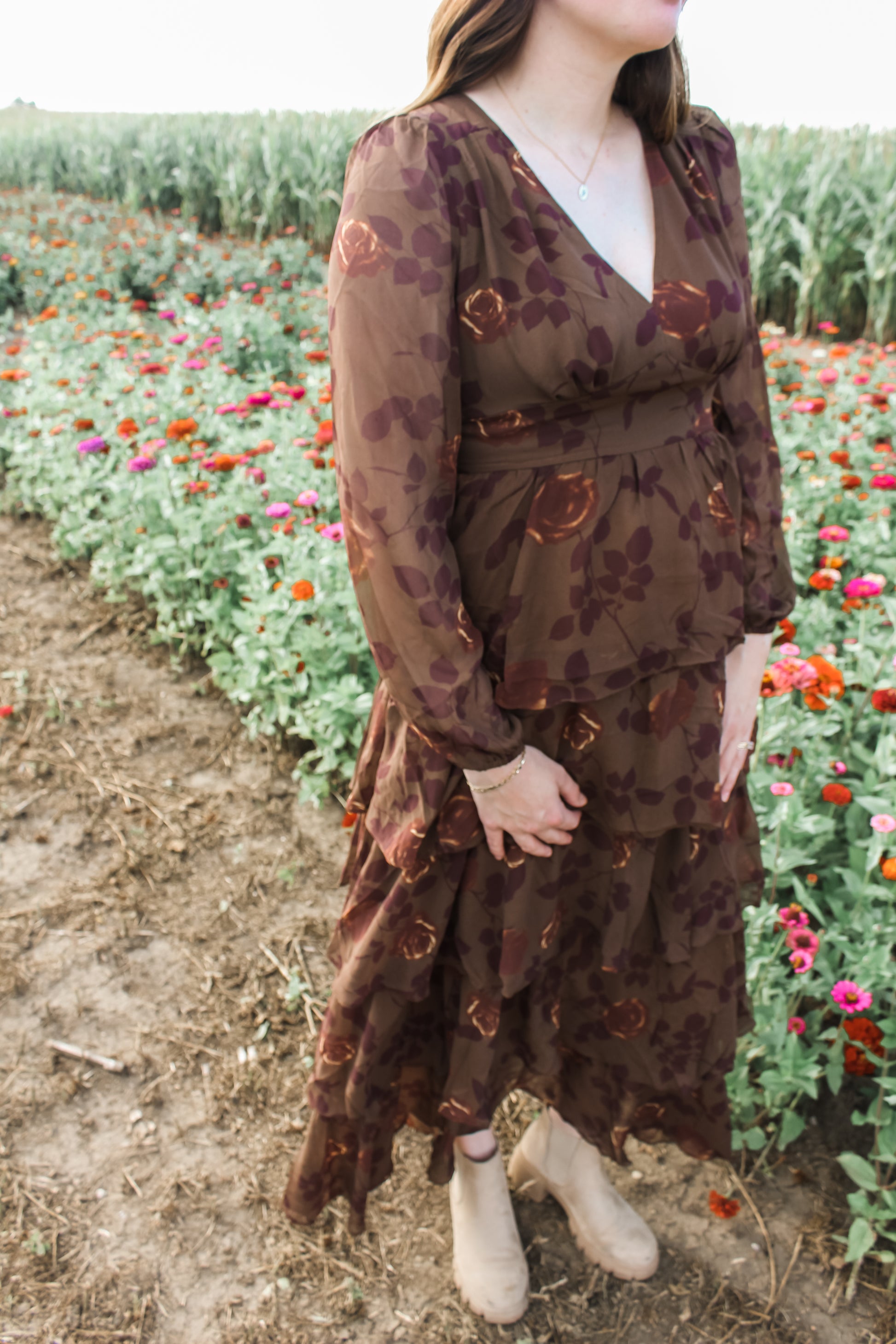 This dress is actually breathtaking! The fit, print, and color scheme is so beautiful! Such a flattering fit. Fits true to size.